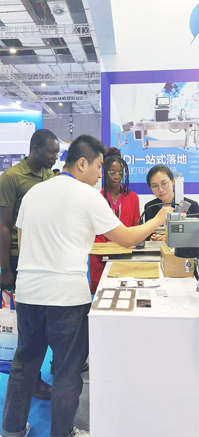 工作人員為觀眾演示賦碼打印檢測系統(tǒng)